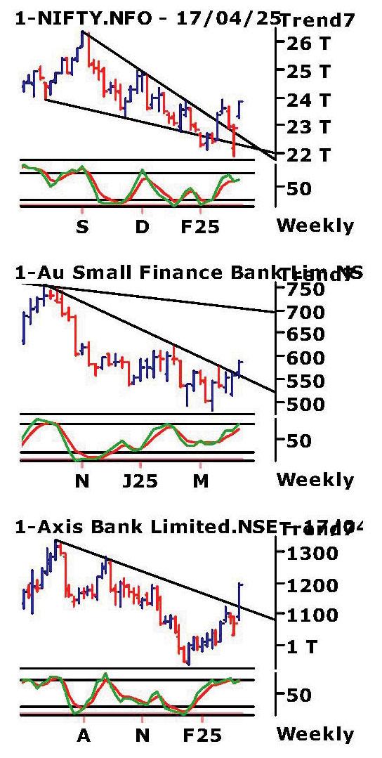 ૨૧,૮૬૦ના બૉટમથી સુધારાતરફી છે. દૈનીક ધોરણે ઓવરબૉટ, અઠવાડિક ધોરણે ન્યુટ્રલ તેમ જ માસિક ધોરણે ન્યુટ્રલ તરફની પોઝિશન દર્શાવે છે. ઉપરમાં ૨૩,૮૯૪ ઉપર ૨૪,૦૨૦, ૨૪,૧૬૦, ૨૪,૩૫૦, ૨૪,૫૬૦, ૨૪,૭૪૦, ૨૪,૯૩૦ સુધીની શક્યતા જોવા મળશે. નીચામાં ૨૩,૩૩૦ નીચે ૨૩,૨૫૨ સપોર્ટ ગણાય. આ સાથે અઠવાડિક ચાર્ટ આપ્યો છે.