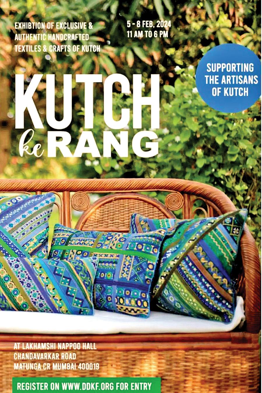 છેલ્લાં ત્રણ વર્ષથી મુંબઈમાં કચ્છની કારીગરીને લોકો સુધી પહોંચાડવાનું કામ કરતું ‘કચ્છ કે રંગ, કચ્છ કે સંગ...’ એક્ઝિબિશન ફરીથી આવી પહોંચ્યું છે. આ પ્રદર્શનમાં કચ્છી કારીગરોનું ઑથેન્ટિક ક્રાફ્ટ અને કચ્છમાં ક્રાફ્ટ માટે જાણીતી પાંચ લીડિંગ સંસ્થાઓના માસ્ટર આર્ટિસન્સનું હૅન્ડ-મટીરિયલ ક્રાફ્ટ્સ જોવા અને ખરીદવા મળશે.