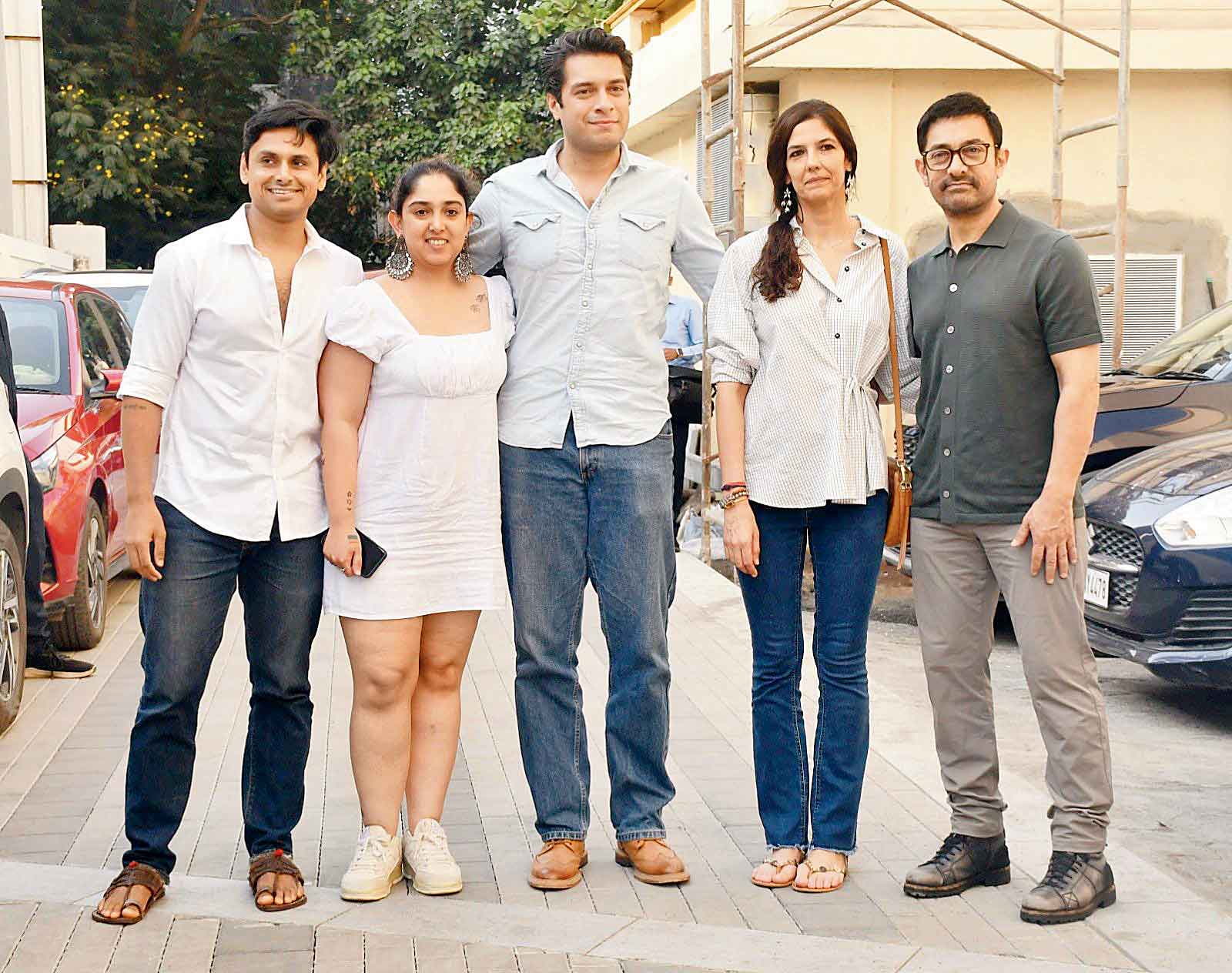 મંગળવારે આમિર ખાનના દીકરા જુનૈદ ખાનની ફિલ્મ ‘એક દિન’નું સ્પેશ્યલ સ્ક્રીનિંગ યોજવામાં આવ્યું હતું. આ સ્પેશ્યલ સ્ક્રીનિંગમાં આખો પરિવાર સાથે જોવા મળ્યો હતો, પણ સૌથી વધારે ચર્ચા આમિર અને તેની ગર્લફ્રેન્ડ ગૌરી સ્પ્રૅટની કેમિસ્ટ્રીની થઈ છે. આ સમગ્ર કાર્યક્રમમાં આમિર ગર્લફ્રેન્ડ ગૌરીનો હાથ પકડીને પહોંચ્યો હતો અને મોટા ભાગનો તેનો હાથ પકડી રાખ્યો હતો. આ સ્ક્રીનિંગમાં આમિરની દીકરી આઇરા ખાન અને જમાઈ નૂપુર શિખરે પણ હાજર હતાં. સોશ્યલ મીડિયા પર આ પરિવારની તસવીરો અને વિડિયો જોવા મળે છે જેમાં જુનૈદ, આઇરા, નૂપુર, આમિર અને ગૌરી એકબીજાને પ્રેમથી ગળે મળતાં જોવા મળે છે.