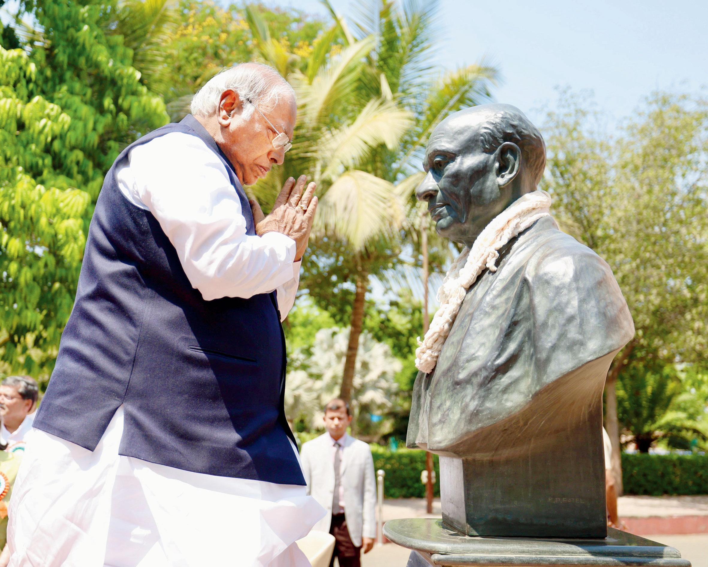 સરદાર પટેલની પ્રતિમાને વંદન કરતા મલ્લિકાર્જુન ખડગે.