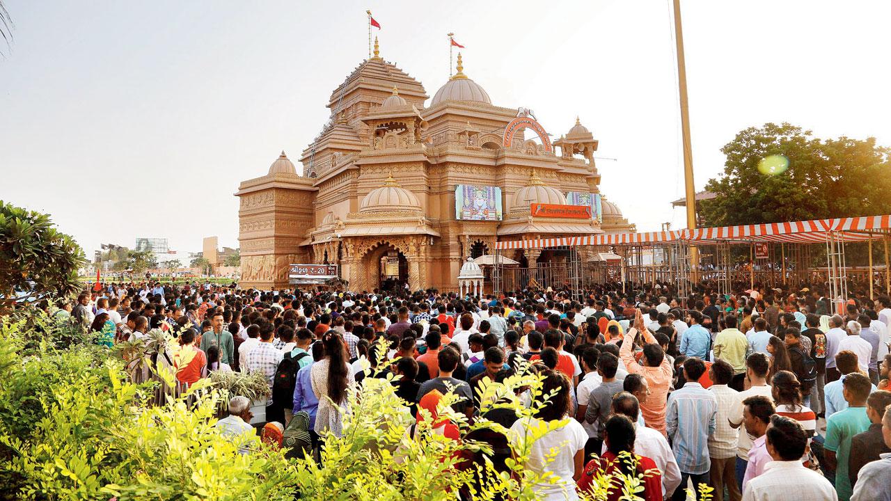 વિશ્વપ્રસિદ્ધ યાત્રાધામ સાળંગપુરમાં વિવાદો વચ્ચે હનુમાનદાદામાં ભાવિકોની આસ્થા અકબંધ રહેવા પામી છે. ગઈ કાલે વહેલી સવારથી સાળંગપુરમાં હનુમાનજી મંદિરમાં શ્રદ્ધાળુઓનું ઘોડાપૂર ઊમટ્યું હતું. ભાવિકોએ હનુમાનદાદાનાં દર્શન કરી ધન્યતા અનુભવી હતી. શ્રાવણ માસના શનિવારે ગઈ કાલે હનુમાનદાદાને ચૉકલેટનો અન્નકૂટ ધરાવાયો હતો.