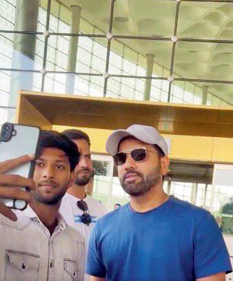 ભારતનો અનુભવી ક્રિકેટર રોહિત શર્મા ઑસ્ટ્રેલિયાની ટૂર માટે ગઈ કાલે મુંબઈથી દિલ્હી રવાના થયો હતો. ગઈ કાલે સાંજે તે મુંબઈ ઍરપોર્ટ પર જોવા મળ્યો હતો જ્યાં તે ફૅન્સથી ઘેરાઈ ગયો હતો. તેણે ધીરજ રાખીને મોટા ભાગના ફૅન્સ સાથે ફોટો અને સેલ્ફી પડાવ્યા હતા.