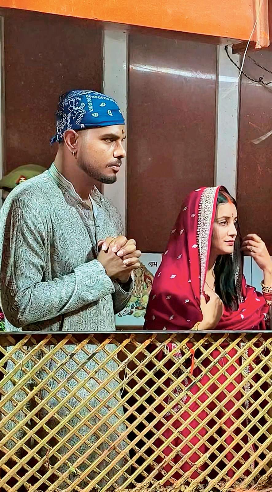 પત્ની શ્વેતા પુંડિર સાથે હનુમાન મંદિરમાં યશ દયાલે દર્શન કર્યાં હતાં.