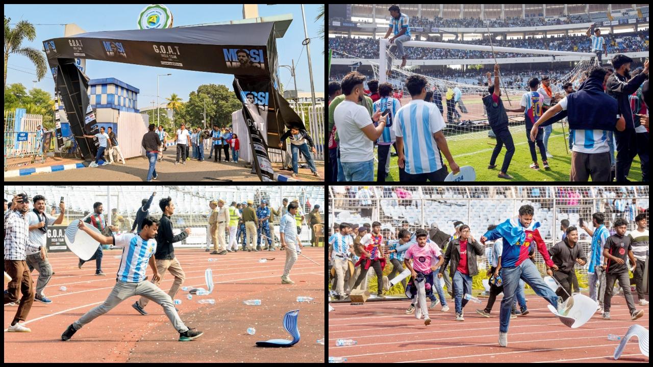 મેદાન પર નેતાઓ સહિતની ભીડની વચ્ચે ઘેરાયેલો મેસી ઑલમોસ્ટ ૨૦ મિનિટમાં જ નીકળી ગયો, મેસીની એક ફુટબૉલ કિક પણ ન જોવા મળતાં હજારો ફૅન્સ બેફામ બન્યા, સીટ ઉખાડી અને મેદાનમાં તોડફોડ કરીને પોતાનો રોષ વ્યક્ત કર્યો