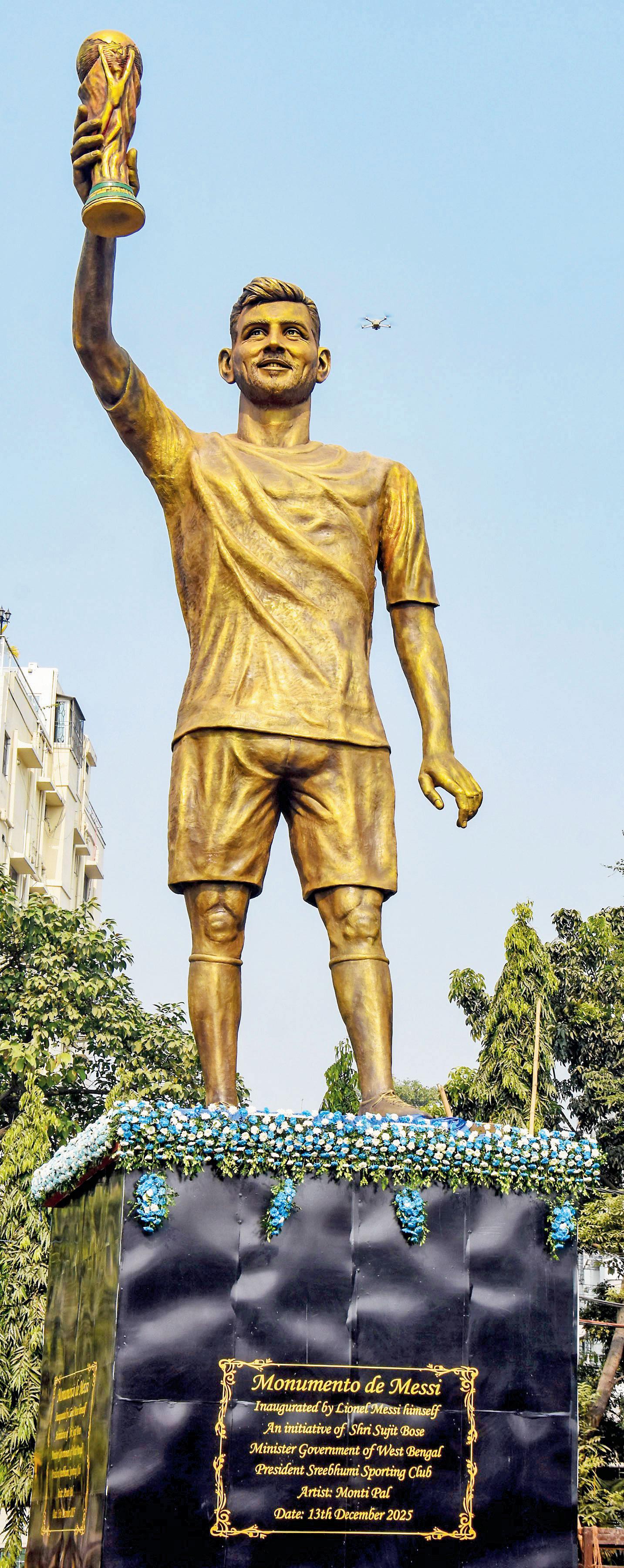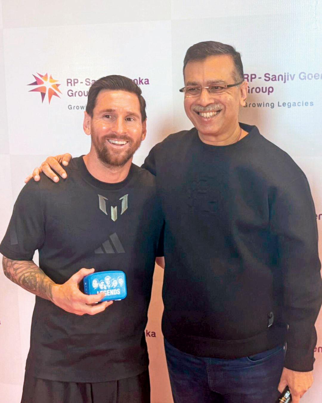 લીઅનલ મેસીએ સવારે હોટેલના ઇવેન્ટ-હૉલમાંથી કલકત્તામાં બનેલા પોતાના ૭૦ ફુટના સ્ટૅચ્યુનું વર્ચુઅલી અનાવરણ કરીને પોતાના ટૂરની શરૂઆત કરી હતી. આ હોટેલમાં જ બિઝનેસમૅન અને વિવિધ સ્પોર્ટ્સ ટીમોના માલિક સંજીવ ગોયનકાએ સૌથી પહેલાં તેની સાથે શુભેચ્છા-મુલાકાત કરી