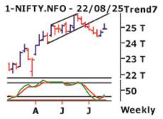 નિફ્ટી ફ્યુચર દૈનિક ધોરણે ટૂંકા ગાળાનો અને અઠવાડિક ધોરણે મધ્યમ ગાળાનો પ્રવાહ પણ નરમાઈતરફી છે તેમ જ માસિક ધોરણે લાંબા ગાળાનો પ્રવાહ સુધારાતરફી છે