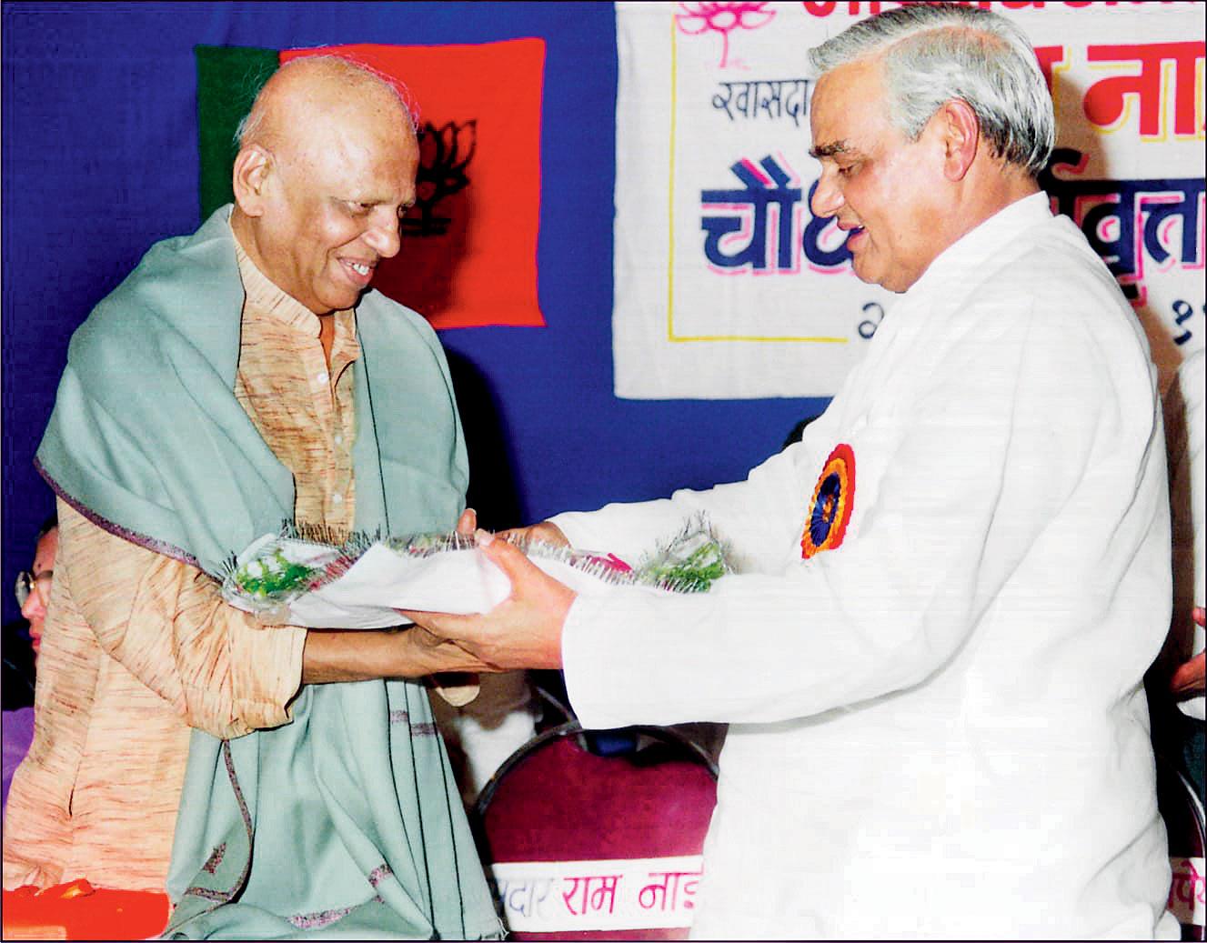 કૅન્સરની રિકવરી પછી ફરી પેટ્રોલિયમ મિનિસ્ટર તરીકે સક્રિય થનારા રામ નાઈકનું સન્માન કરી રહેલા અટલજી.