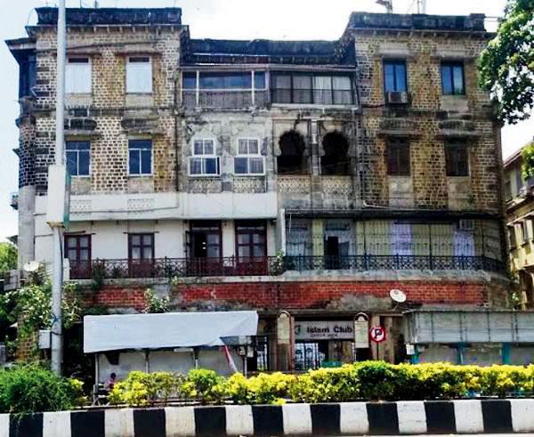 ચોપાટી પર બાવલા રહેતા તે મકાન. નીચે ઇસ્લામ ક્લબ.