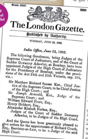 તારીખ: ૧૪ ઑગસ્ટ, ૧૮૬૨. સ્થળ: બૉમ્બે બ્રાન્ચ ઑફ ધ રૉયલ એશિયાટિક સોસાયટીનો હૉલ. સમય: બપોરના ૪. ઘટના: બૉમ્બે હાઈ કોર્ટની સ્થાપના.
