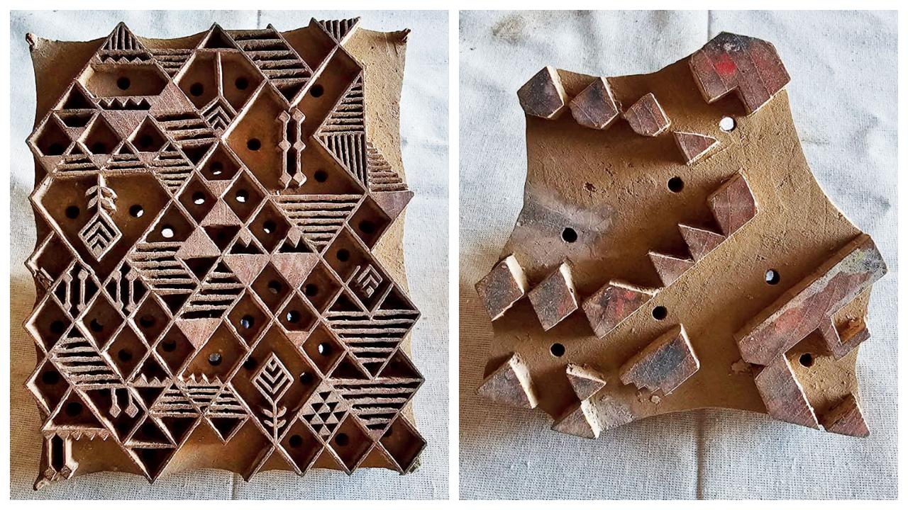 આ ત્રણ જુદા-જુદા બ્લૉક છે જેના વડે એક ડિઝાઇન બને છે. આ ખાંચાઓ એ રીતે તૈયાર થયા છે કે એકસાથે ત્રણ રંગોને ડિઝાઇનમાં સમાવી શકાય.