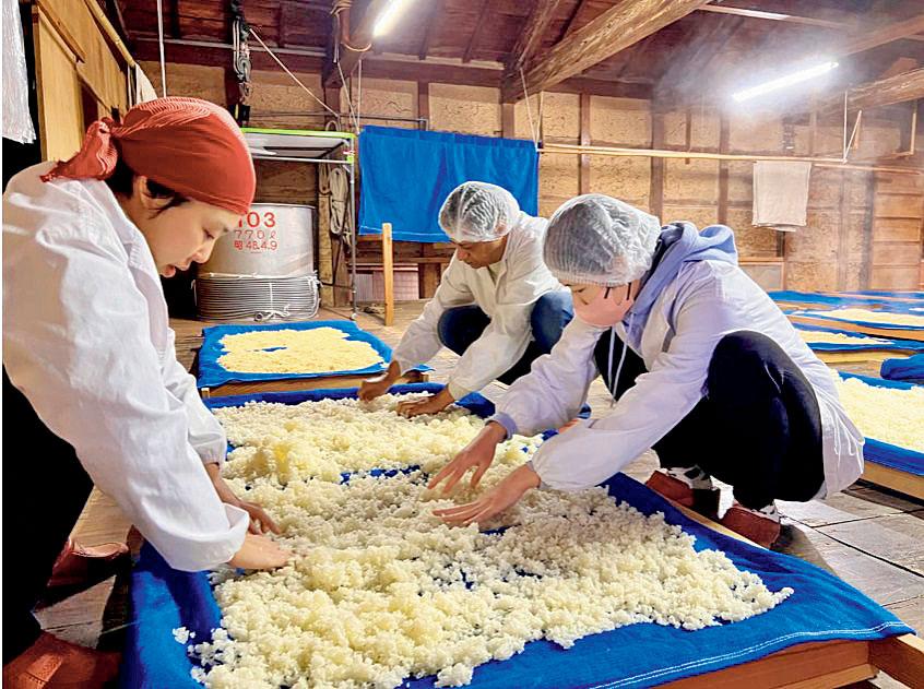 પારંપરિક રીતે સાકે બનાવવાની પ્રક્રિયામાં બાફેલા રાઇસને ઠંડા કરવા, પાથરવા પડે અને ત્યાર બાદ એને કોજીમાં બદલવામાં આવે. લોકલ સાથે મળીને અનુભવ કરી રહેલા રવિ જોશી.