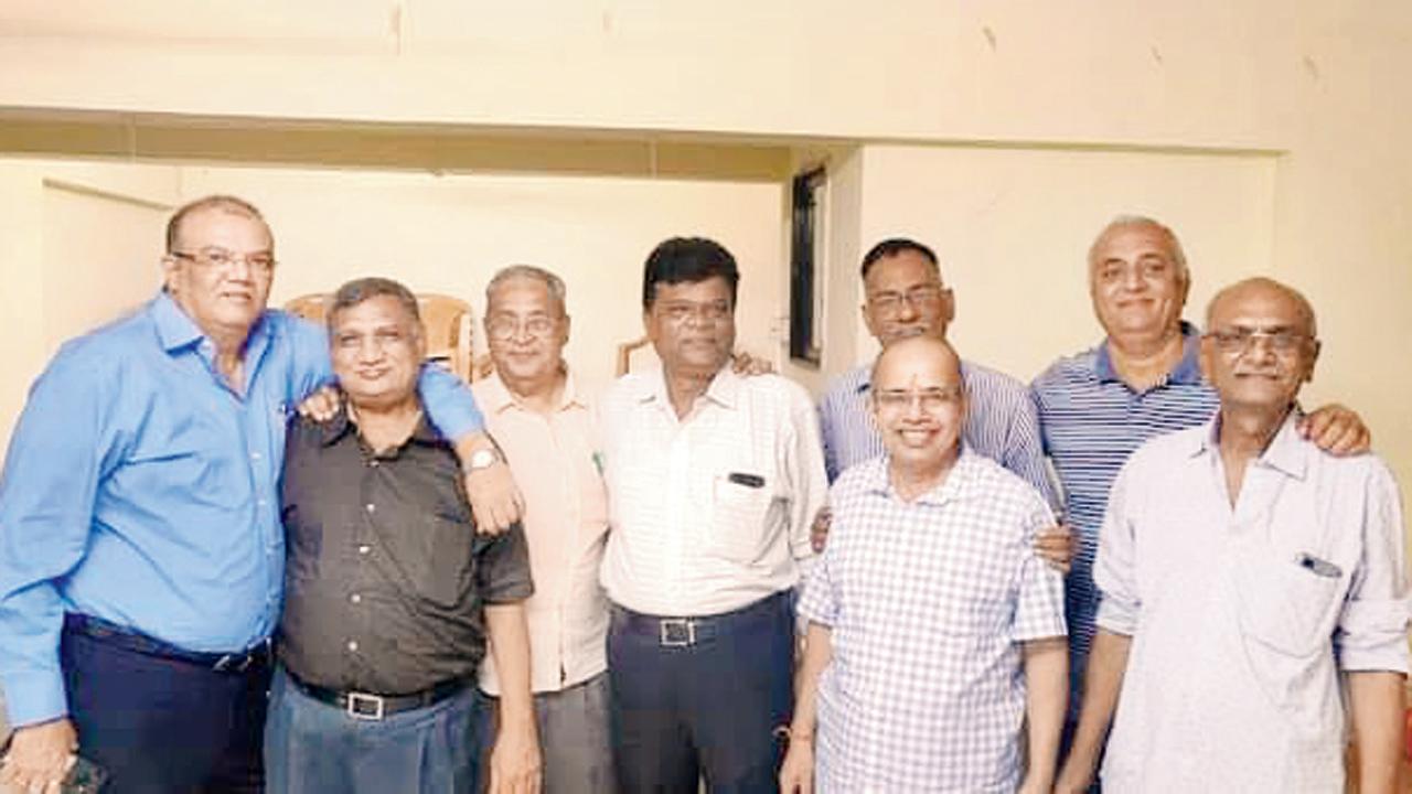 બાળપણના મિત્રો સાથે મનોહર કાપડિયા (જમણેથી બીજા, પાછળ).