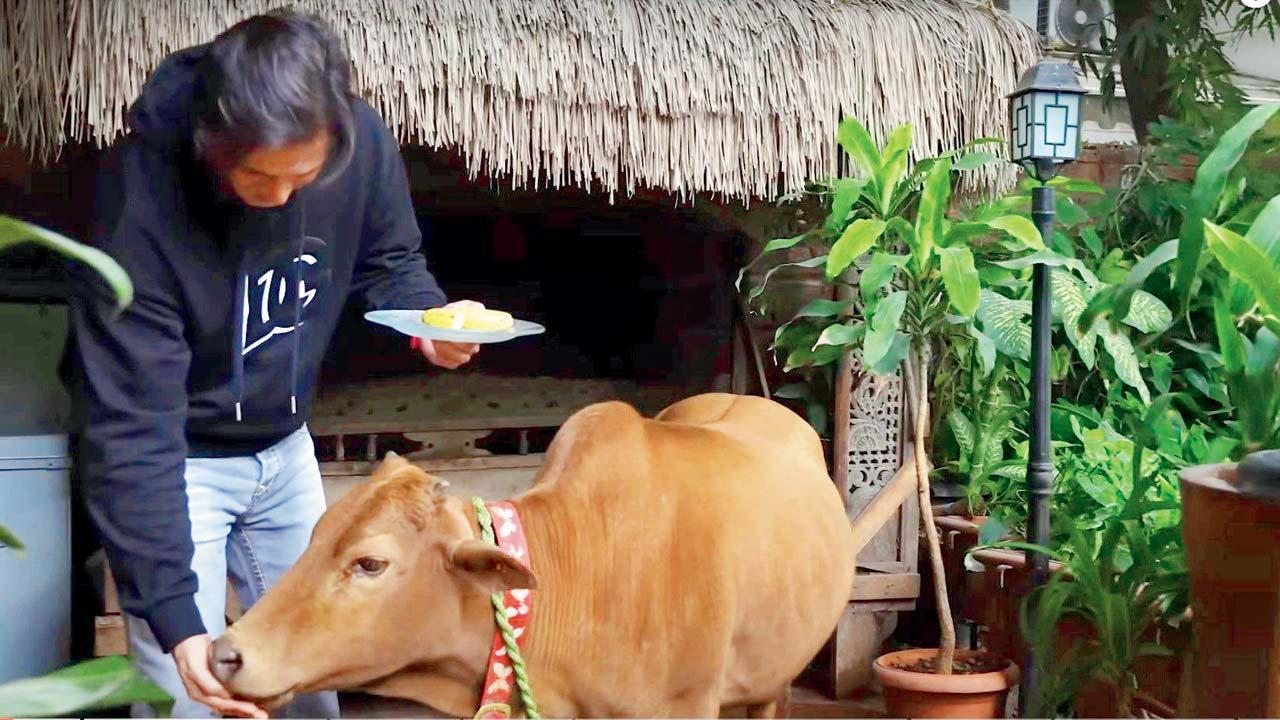 મુંબઈના ઘરમાં ગામડાની ફીલ આવે એ માટે કામધેનુને બંગલોના એન્ટ્રન્સ પર રાખી છે