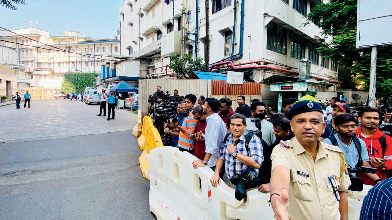 ગઈ કાલે બ્રીચ કૅન્ડી હૉસ્પિટલની બહાર ભેગા થયેલા મીડિયાના કર્મચારીઓ.