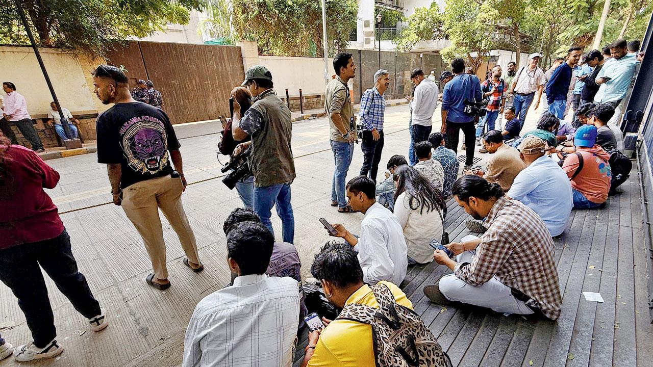 ગઈ કાલે જુહુમાં ધર્મેન્દ્રના ઘરની બહાર બેઠેલા મીડિયાના માણસો (તસવીર : નિમેશ દવે)