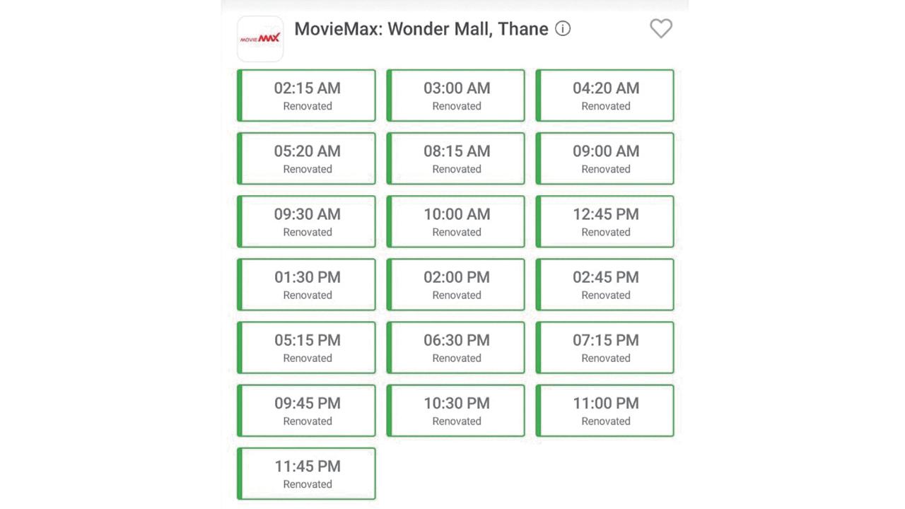 થાણેના વન્ડર મૉલમાં આવેલા મૂવીમૅક્સનું ૧૯ તારીખનું શેડ્યુલ