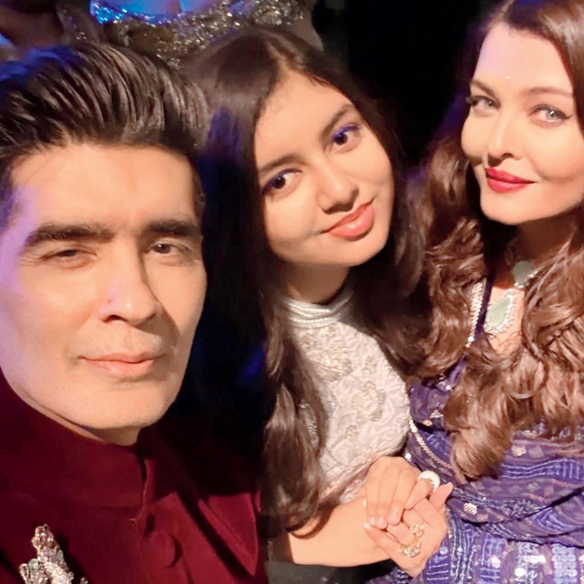 હાલમાં ઉદ્યોગપતિ મુદિત અદાણી અને અનન્યા દીવાનજીના લગ્નપ્રસંગમાં અન્ય સેલિબ્રિટીઝ સાથે અભિષેક બચ્ચન, ઐશ્વર્યા રાય બચ્ચન અને આરાધ્યા બચ્ચનની હાજરીએ બધાનું ધ્યાન ખેંચ્યું હતું. આ પ્રસંગમાં ઐશ્વર્યાએ પતિ અભિષેક સાથે ટ્વિનિંગ કર્યું હતું અને બન્ને રૉયલ બ્લુ ટ્રેડિશનલ આઉટફિટમાં સાથે જોવા મળ્યાં હતાં, જ્યારે આરાધ્યા વાઇટ શિમરી આઉટફિટમાં જોવા મળી હતી. આ ફંક્શનમાં ઐશ્વર્યા અને આરાધ્યા બન્ને એકસરખી સાઇડ-પાર્ટેડ વેવી ઓપન હેરસ્ટાઇલમાં જોવા મળ્યાં હતાં. આ ફંક્શનમાં અભિષેક અને ઐશ્વર્યાએ સલમાન ખાનના ‘સલામ-એ-ઇશ્ક’ ગીત પર પર્ફોર્મ કર્યું હતું જેનાં વિડિયો અને તસવીરો અત્યારે ચર્ચામાં છે.