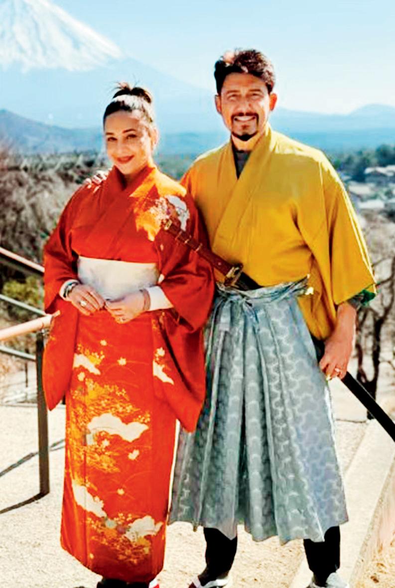 માધુરી દીક્ષિત તાજેતરમાં પતિ શ્રીરામ નેને સાથે જપાનમાં વેકેશન માણવા ગઈ હતી. હાલમાં માધુરીએ પોતાના સોશ્યલ મીડિયામાં આ ટ્રિપની તસવીરો પોસ્ટ કરી છે. આ તસવીરોમાં માધુરી અને શ્રીરામ અલગ-અલગ ટૂરિસ્ટ-લોકેશન પર જોવા મળે છે. એક તસવીરમાં તો માધુરીએ જપાનના કિમોનો ડ્રેસ પહેર્યો છે અને શ્રીરામ પણ પરંપરાગત જપાની પહેરવેશમાં જોવા મળે છે.