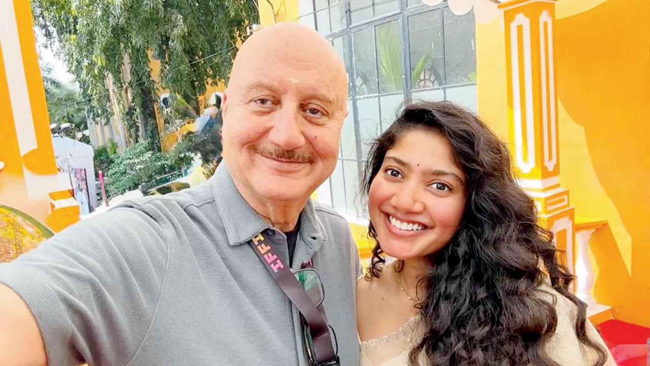 હાલમાં ગોવામાં ૫૬મો ઇન્ટરનૅશનલ ફિલ્મ ફેસ્ટિવલ ઑફ ઇન્ડિયા (IFFI) ચાલી રહ્યો છે. આ ફિલ્મ ફેસ્ટિવલ દરમ્યાન અનુપમ ખેર અને સાઈ પલ્લવીની મુલાકાત થઈ હતી. અનુપમે આ મુલાકાતની ખાસ તસવીર સોશ્યલ મીડિયા પર શૅર કરીને સાઈ પલ્લવીને તેની આવનારી ફિલ્મો માટે શુભકામનાઓ આપી હતી. આ તસવીર શૅર કરીને અનુપમે કૅપ્શન લખી, ‘ખૂબસૂરત ઍક્ટ્રેસ સાઈ પલ્લવી સાથે ખાસ મુલાકાત. તેને મળીને ખૂબ આનંદ થયો. થોડા સમયની વાતચીતમાં જ તે સંપૂર્ણપણે સચ્ચી, પ્યારી અને સહજ લાગી. તે કમાલની અભિનેત્રી છે. તેના આવતા તમામ પ્રોજેક્ટ્સ માટે ઘણીબધી શુભકામનાઓ. જય હો.’