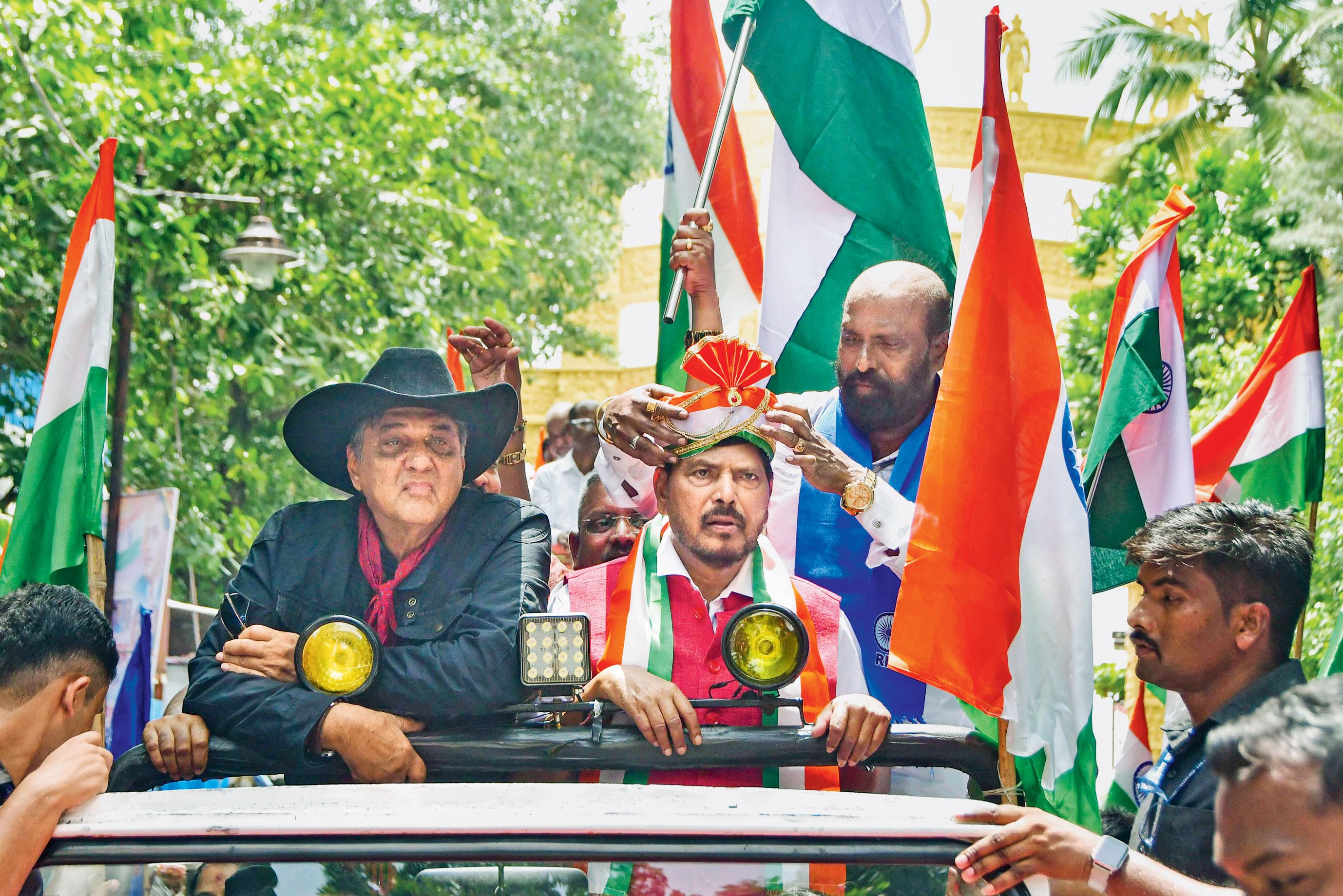 અભિનેતા મુકેશ ખન્નાએ ગઈ કાલે મુંબઈમાં યોજાયેલી એક તિરંગા યાત્રામાં કેન્દ્રીય પ્રધાન રામદાસ આઠવલે સાથે ભાગ લીધો હતો. ભારતીય આર્મ્ડ ફોર્સિસના સન્માનમાં આ યાત્રા યોજાઈ હતી.