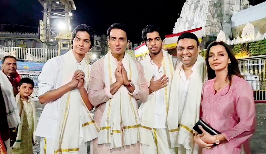 સોનુ સૂદે ગઈ કાલે પત્ની સોનાલી તથા પુત્રો અયાન અને ઇશાંત સાથે તિરુપતિ બાલાજીનાં દર્શન કર્યાં હતાં.