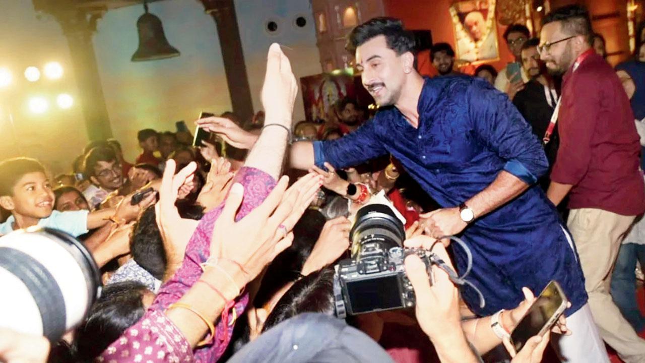 રણબીર કપૂરે ગઈ કાલે મુખરજી-પરિવાર દ્વારા આયોજિત જુહુમાં આવેલા દુર્ગાપૂજા પંડાલની મુલાકાત લીધી હતી
