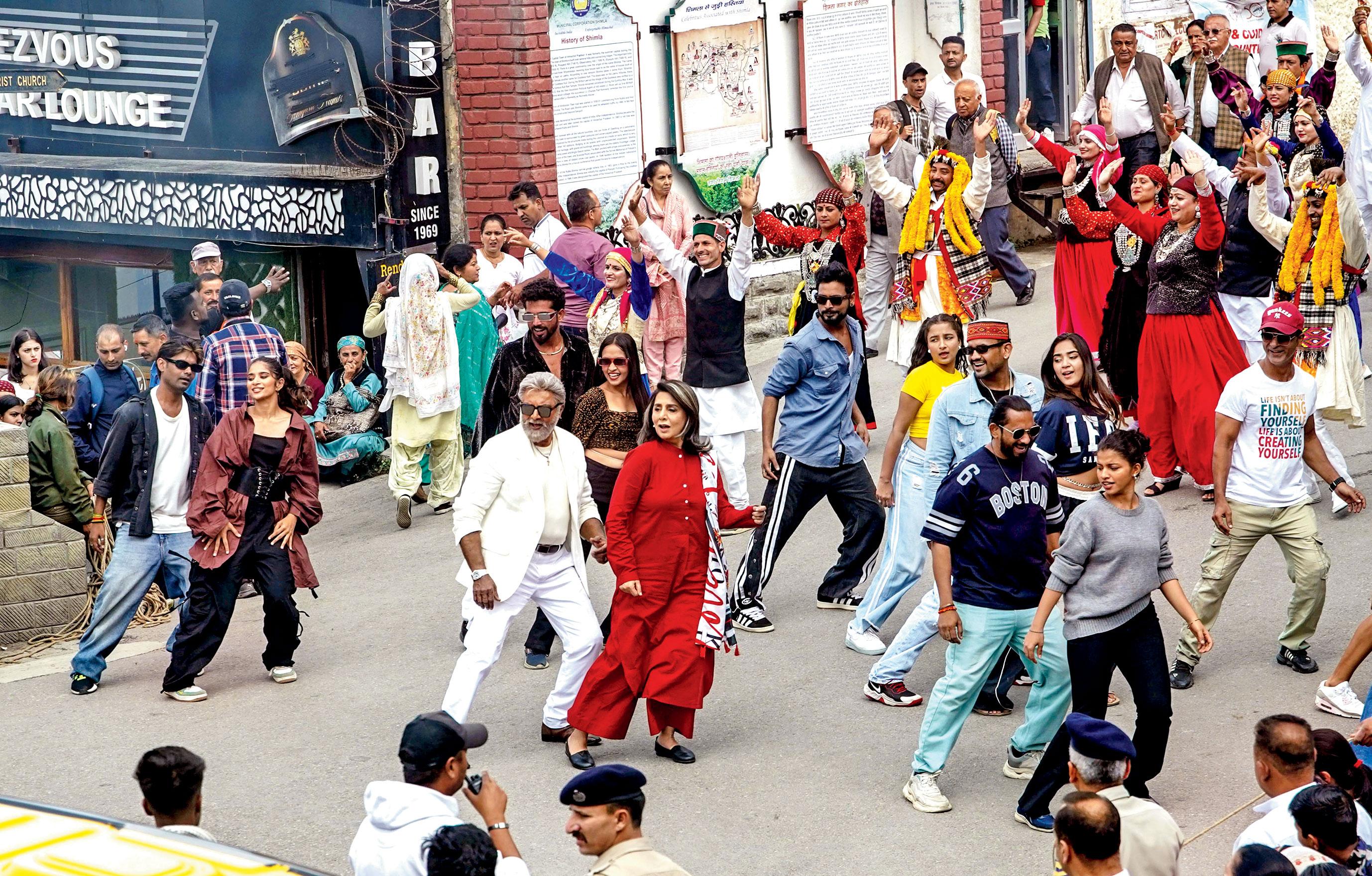 ગઈ કાલે શિમલામાં ફિલ્મ ‘દાદી કી શાદી’નું શૂટિંગ કરતાં કપિલ શર્મા અને નીતુ કપૂર.
