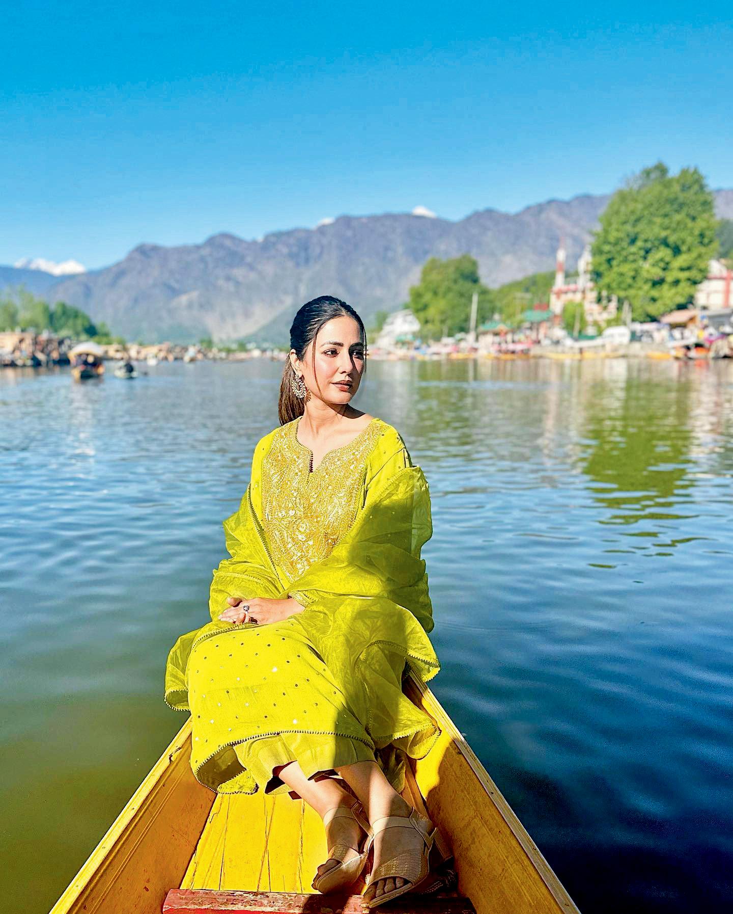 હિના ખાન ઈદ મનાવવા કાશ્મીરનાં મનમોહક સ્થળોએ પહોંચી ગઈ છે. તેણે દલ લેકમાં શિકારાનો આનંદ લીધો હતો. પોતાની આ ટ્રિપના ફોટો તેણે સોશ્યલ મીડિયામાં શૅર કર્યા હતા. ટ્રેડિશનલ આઉટફિટમાં તે ખૂબસૂરત દેખાતી હતી. આ ફોટોને ઇન્સ્ટાગ્રામ પર શૅર કરીને હિના ખાને કૅપ્શન આપી હતી, ‘આ વખતે કાશ્મીરની મુલાકાત એ એક થેરપી જેવો સમય હતો. આ સ્થળ ખૂબ આકર્ષક છે.’