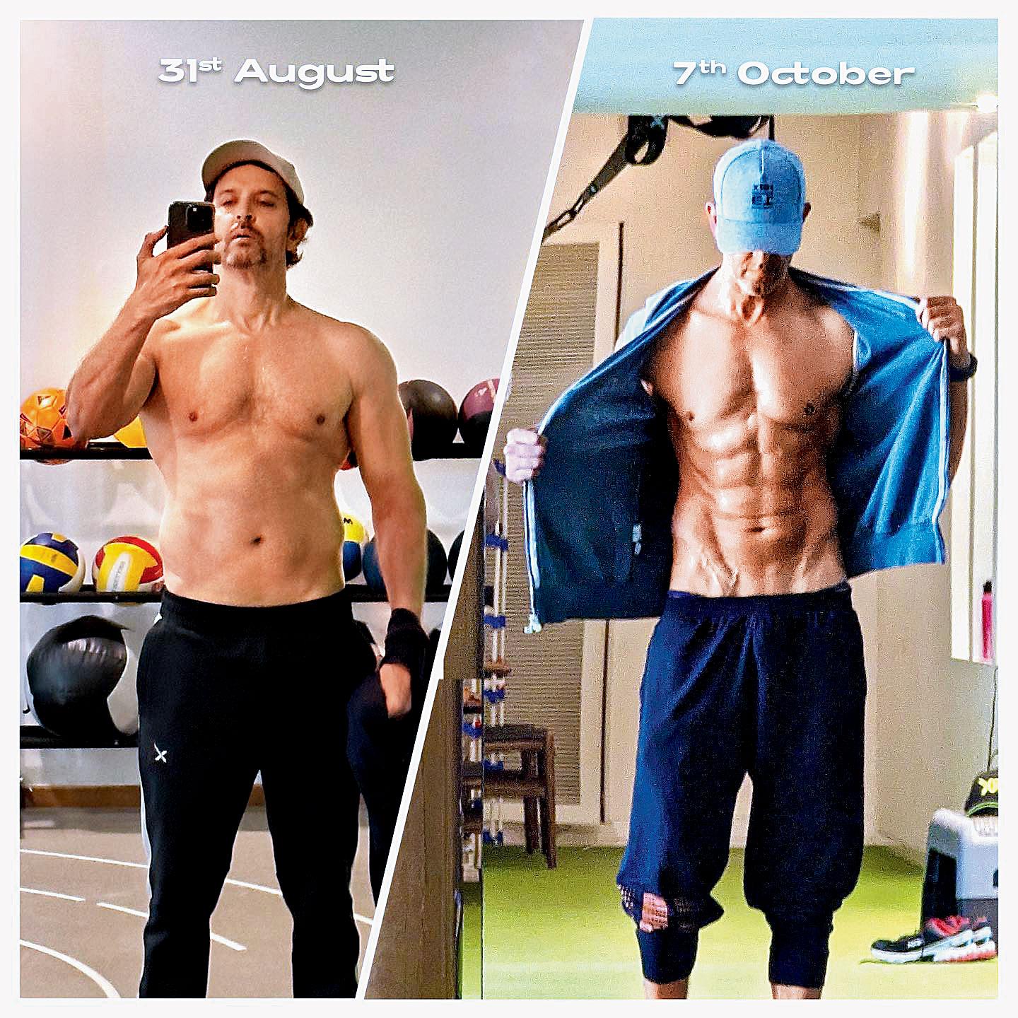 હૃતિક રોશને પર્ફેક્ટ ફિઝિક મેળવવા માટે સખત મહેનત કરી છે. એને માટે તેણે સખત ડિસિપ્લિનનું પણ પાલન કર્યું હતું અને પોતાના ટ્રેઇનરનાં ઇન્સ્ટ્રક્શન્સ ફૉલો કર્યાં હતાં. હૃતિકે એક્સરસાઇઝ પહેલાંનો અને બાદનો ફોટો શૅર કર્યો છે. એના પર તારીખ પણ લખી છે. એ ફોટોને ઇન્સ્ટાગ્રામ પર શૅર કરીને હૃતિકે કૅપ્શન આપી છે, ‘પાંચ અઠવાડિયાં સતત મહેનત. મારાં ઘૂંટણ, પીઠ, પાની, ખભા, કરોડરજ્જુ અને માઇન્ડ એ સૌનો આભાર. તમે ખૂબ સારી રીતે સાથ આપ્યો. હવે આરામનો સમય છે. સ્વસ્થ રહેવાનું અને બૅલૅન્સ જાળવવાનું છે. અઘરી વસ્તુ - મેં અનેક અગત્યની બાબતો જેવી કે મારા પ્રિયજનો, ફ્રેન્ડ્સ, અવસર, સ્કૂલની પીટીએમને ના પાડી હતી. બીજી અઘરી વસ્તુ - મારે રાતે નવ વાગ્યે ઊંઘી જવાનું હતું. સરળ બાબત - મારી જેમ વિચારનાર પાર્ટનર મારી સાથે છે. થૅન્ક યુ. સારી બાબત - મને મિસ્ટર ક્રિસ ગેથીન જેવો મેન્ટર મળ્યો છે, જેના પર તમે આંખ બંધ કરીને વિશ્વાસ કરી શકો છો. થૅન્ક યુ મિસ્ટર ક્રિસ ગેથીન. તારા સિવાય હું આ ન કરી શક્યો હોત. મારી ટીમનો પણ આભાર. હું નસીબદાર છું કે મારી આસપાસ આવા લોકો છે.’