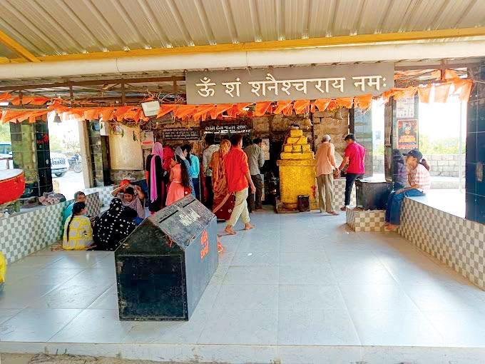 ઍન્ડ નાઓ ઓવર ટુ શનિદેવ. લગભગ અઢીથી ત્રણ ફુટની સિંદૂરિયા લેપથી ઓપતી શનિદેવની મૂર્તિ હંમેશાં આકડાનાં ફૂલની માળા, કાળાં વસ્ત્રો તેમ જ શમીનાં પાનના હારથી સુશોભિત રહે છે. એની બાજુમાં સાત અને એક અડધી એમ સાડાસાત પિંડીરૂપે પનોતીમાતા બિરાજે છે. એની બાજુમાં સોના, ચાંદી, તાંબું અને લોખંડની નાની પનોતી રૂપે અન્ય ચાર પિંડીઓ છે.
