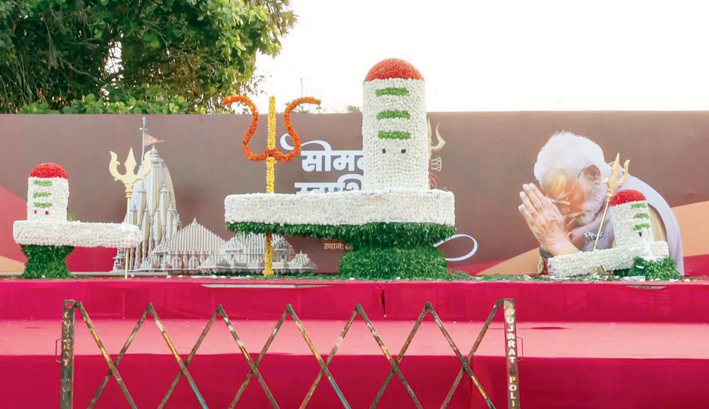 વડા પ્રધાનના આગમન નિમિત્તે સોમનાથમાં ઠેર-ઠેર ફૂલોની સજાવટ થઈ છે.