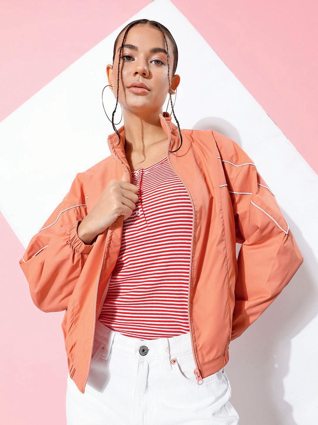 જેન-ઝી યુવતીઓ ટ્યુબ ટૉપ સાથે ક્રૉપ બૉમ્બર જૅકેટ પહેરીને ટ્રેન્ડી લેયરિંગ કરી શકે છે.
