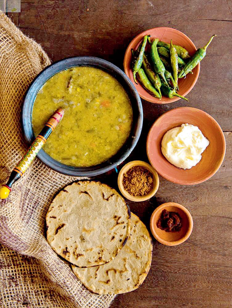 સામગ્રી: ૧/૪ કપ લીલી ફોતરાવાળી મગની દાળ, ૧/૪ કપ ચણાની દાળ, ૧/૨ બાઉલ મેથીની ભાજી, ૧/૨ બાઉલ પાલકની ભાજી, ૧/૨ બાઉલ લીલું લસણ, ૧/૨ બાઉલ લીલા ધાણા, ૧/૪ બાઉલ તુવેરના દાણા, ૧/૪ બાઉલ પાપડીના દાણા, ૧/૪ બાઉલ વટાણા, ૧/૪ બાઉલ ફણસી, ૧/૪ બાઉલ વાલોળ, ૧/૪ બાઉલ ફ્લાવર, ૧/૪ બાઉલ દૂધી, ૧ નંગ બટાટું, ૧ નંગ શક્કરિયું, ૧ નંગ ગાજર, ૨ નંગ રીંગણ, ૧ નંગ નાનું કૅપ્સિકમ, ૧ નંગ ડુંગળી, ૧ નંગ ટમેટું