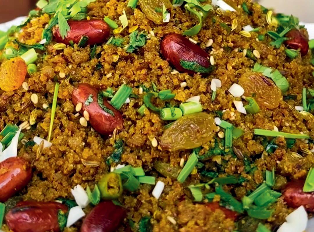સામગ્રી : ૨ બાજરીના રોટલા, ૩ ટેબલસ્પૂન તેલ, ૧/૪ ટીસ્પૂન જીરું, ૧ ચમચી વરિયાળી, ૧ ચમચી તલ, ૧ ચમચી અજમો, ૨ ચમચી સમારેલું લીલું લસણ, ૩-૪ કાજુના ટુકડા, ૫-૬ કિસમિસ, ૫-૬ મીઠા લીમડાનાં પાન, સ્વાદ અનુસાર મીઠું, ૧/૪ ચમચી હળદર, તીખાશ પ્રમાણે લાલ મરચું