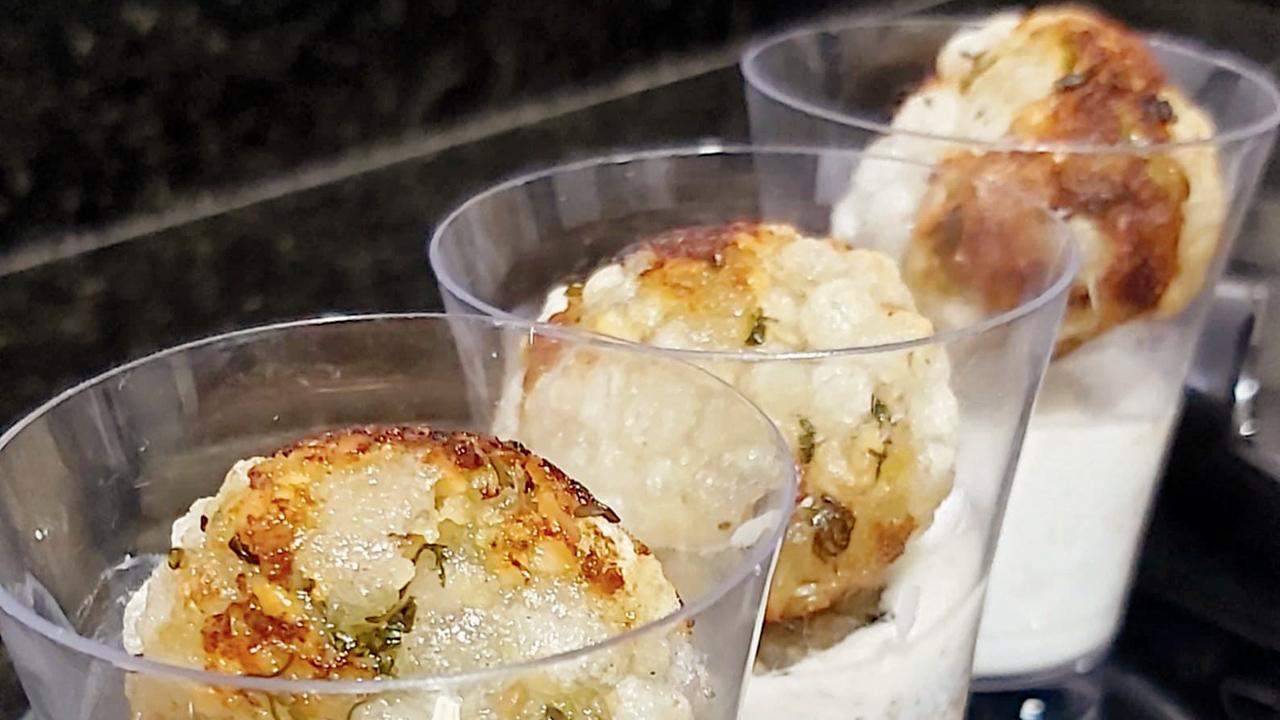રીત : સાબુદાણાને ત્રણ-ચાર કલાક પલાળવા. બટેટાને બાફીને માવો તૈયાર કરવો. એમાં સાબુદાણા, સીંગનો ભૂકો, કોથમીર, આદુ-મરચાં, મીઠું, લીંબુ નાખીને સરખી રીતે મિક્સ કરી નાના-નાના બૉલ્સ બનાવી લો. દહીંને ઘોળી એમાં સાકર, મરી પાવડર અને કોથમીર નાખી ફ્રિજમાં ચિલ્ડ કરવા મૂકો. હવે અપમની લોઢી ગૅસ પર ગરમ કરવા મૂકવી. બધાં ખાનાંમાં સહેજ તેલ લગાવી સાબુદાણાના બૉલ્સ મૂકવા. બૉલ્સની ઉપર પણ સહેજ તેલ લગાવવું. થોડી-થોડી વારે ફેરવવું. બ્રાફન કલર આવે પછી ઉતારી લેવા. નાની સાઇઝના ગ્લાસમાં ચિલ્ડ દહીં રેડી એના પર બૉલ્સ મૂકી સર્વ કરો.