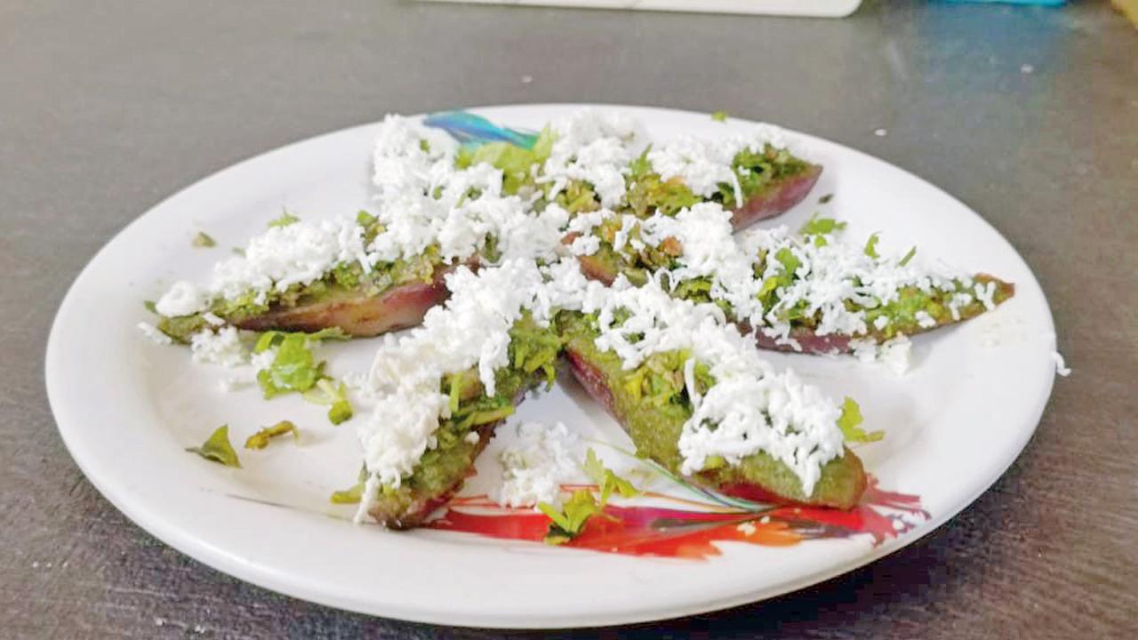 સામગ્રી : પૂરણ બનાવવા માટે અડધી વાટકી ફ્રેશ નાળિયેરનું ખમણ, બે ચમચી સીંગદાણાનો ભૂકો, બે ચમચી બારીક સમારેલી કોથમીર, બારીક કાપેલાં લીલાં મરચાં, ૬-૭ સમારેલા મનુકા, પનીર (ઑપ્શનલ), મીઠું , સાકર સ્વાદ પ્રમાણે, આઉટર લેયર માટે એક વાટકી શીંગોડાનો લોટ