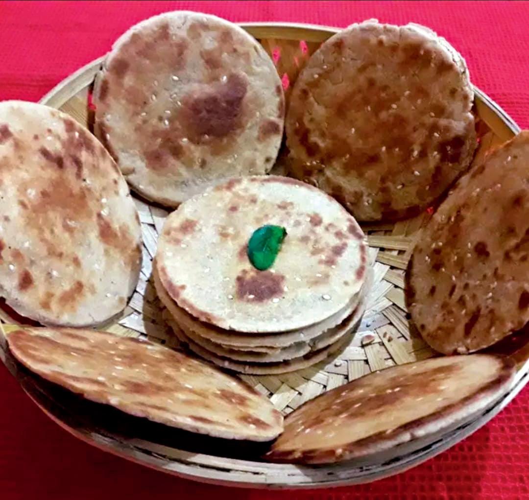 લોઢી ગરમ કરવા મૂકી ભાખરીને ઘીથી બન્ને બાજુએ ગોલ્ડન બ્રાઉન શેકી લો. ઠંડી ભાખરી ઘી સાથે ખૂબ જ ટેસ્ટી લાગે છે. છઠના દિવસે દેશી ચણાનું શાક અથવા બટાટાનું શાક બનાવતા હોય છે. એની સાથે પણ આ ભાખરી ખૂબ જ ટેસ્ટી લાગે છે.