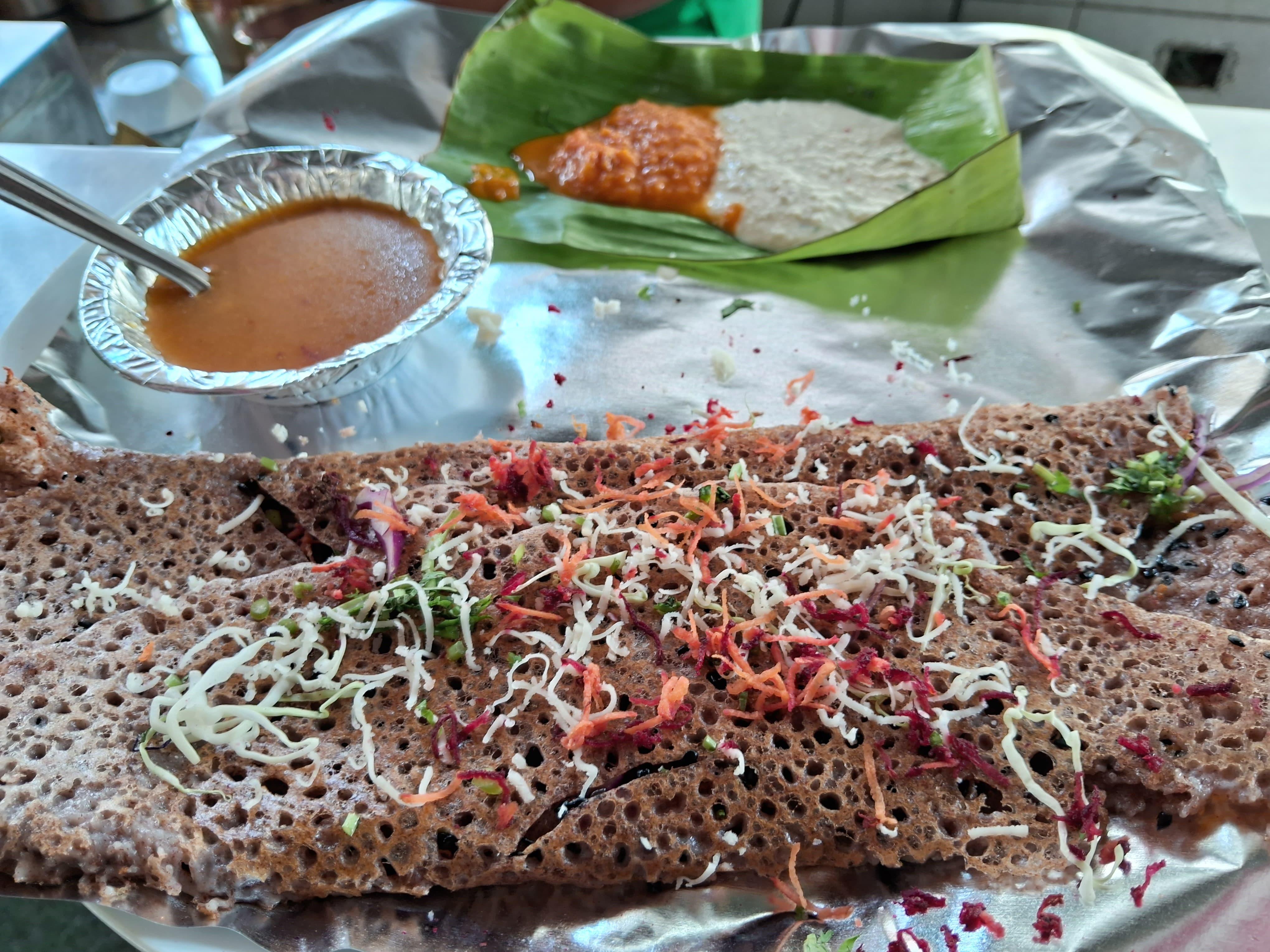 ઉપરાંત રાગી રવા બ્લેક તીલ ઢોસો પણ અમે ટ્રાય કર્યો જે તેમનું હેલ્ધી મેન્યૂ ઑપ્શન છે. આમાં ખૂબ જ ઓછા મસાલા હોય છે. એટલે એનો ટેસ્ટ સહેજ મોળો જરૂર છે, પણ ચટણી અને સંભાર સાથે ખાશો તો જલસો પડી જશે.