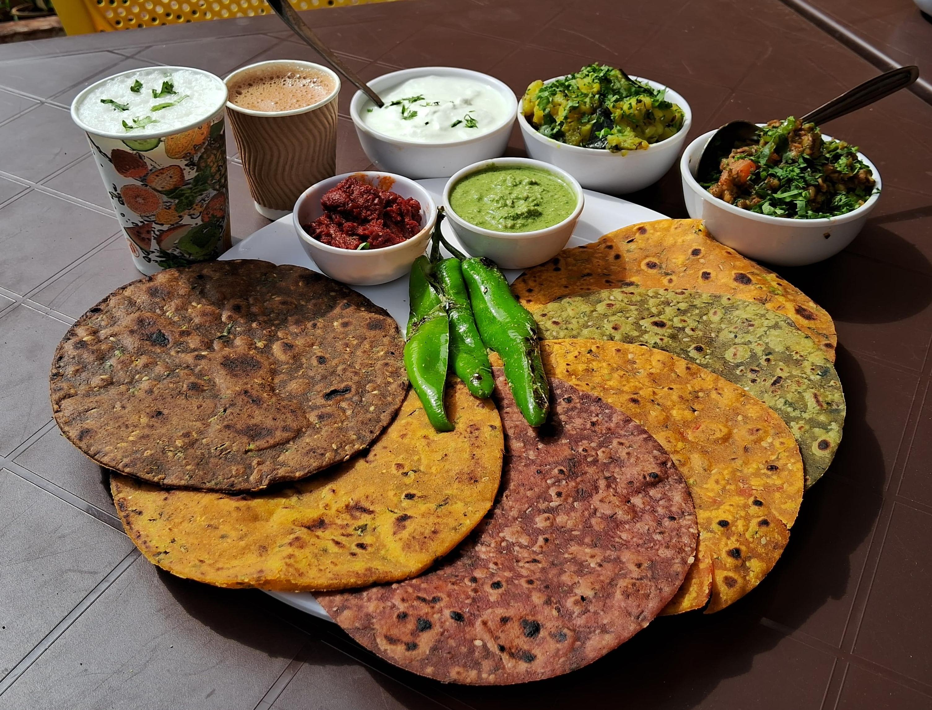 થેપલા મીલ જેવો કૉન્સેપ્ટ તો મુંબઈમાં ભાગ્યે જ કોઈએ સાંભળ્યો હશે. અહીં થેપલા મીલમાં તમને ચાર વેજિટેબલ થેપલા અથવા બે મિલેટ્સ થેપલા સાથે સૂકી ભાજી અથવા મસાલા મગ અને સાથે ચા/દહીં/ છાસમાંથી કંઈ પણ પસદ કરી શકો છો. અમે તો વેજિટેબલ અને મિલેટ્સ બંને થેપલા ચાખ્યા, મજા પડી ગઈ.