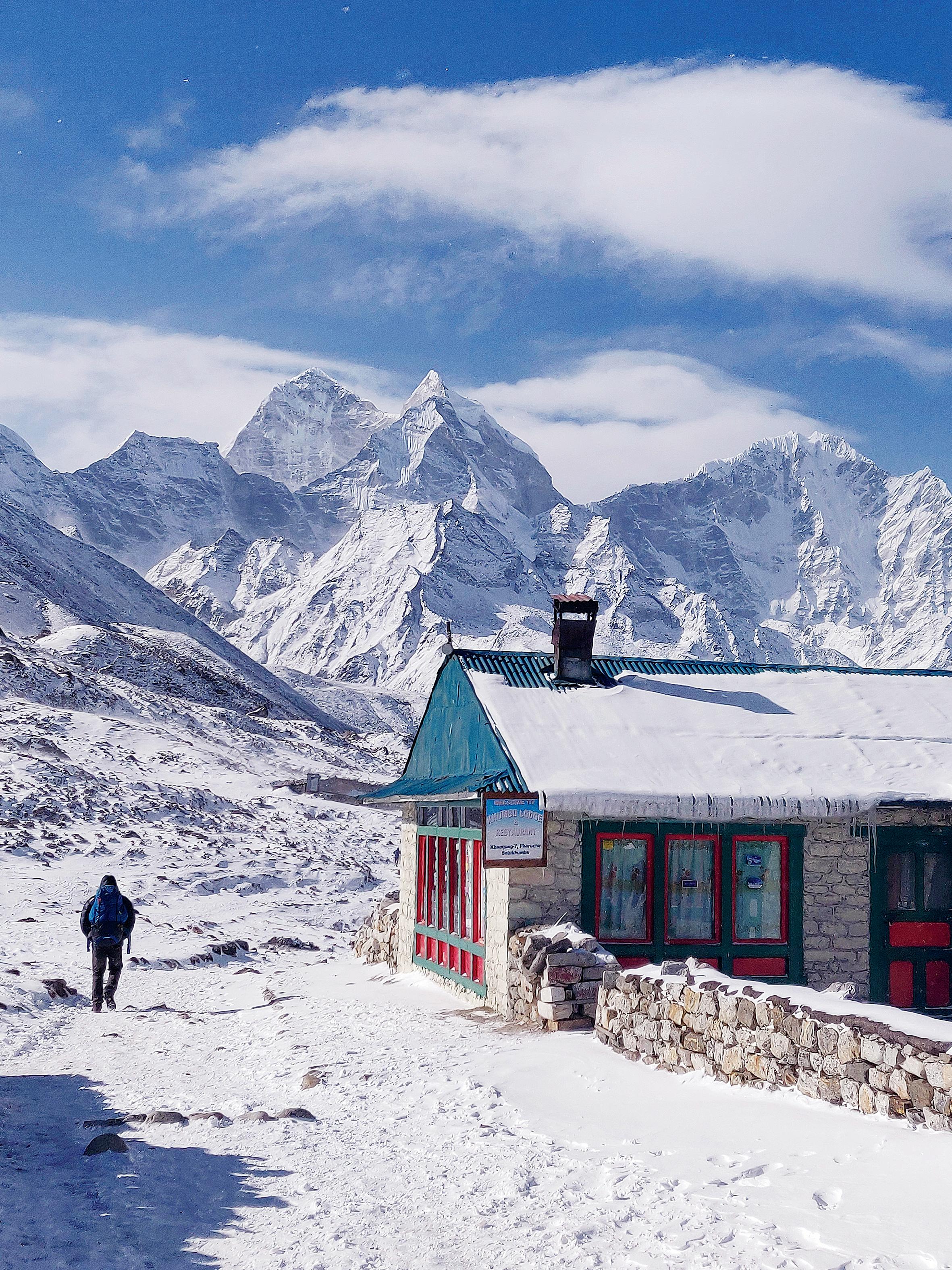૨૦૧૯માં એવરેસ્ટ બેઝ કૅમ્પથી પાછા ફરતી વખતે પેરિચે ગામમાં.