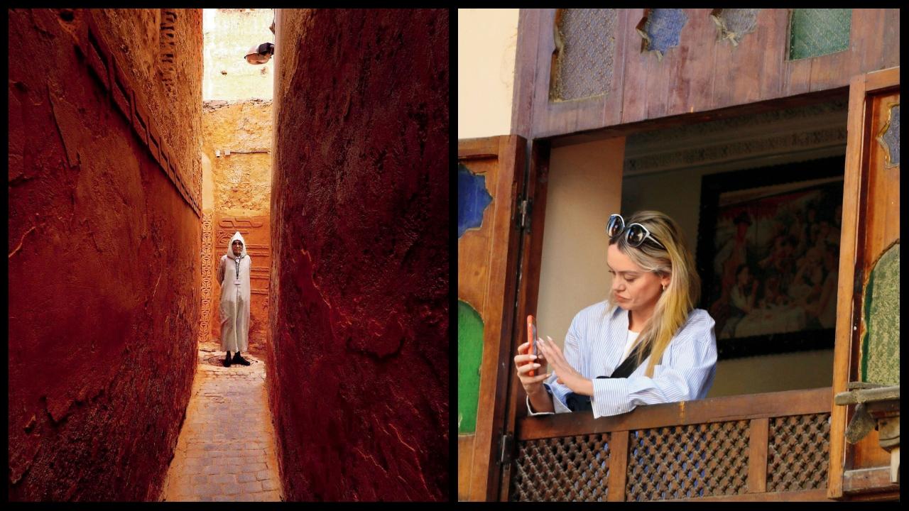 રેસ્ટોરાંની સાંકડી શેરીમાં આવકારતા શ્રીમાન નઈમ. ફેઝ મડીનાનું મધ્યકાલીન સૌંદર્ય નિહાળી રહેલી વિદેશી માનુની.