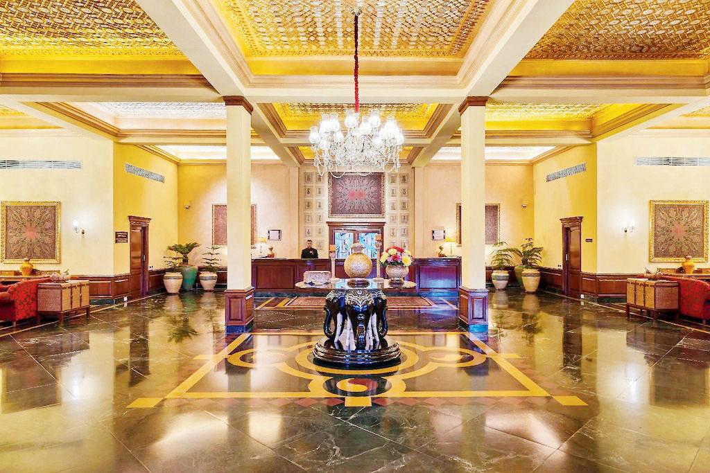 મહેલનું મુખ્ય મકાન તમારું મન મોહી લે છે. આ કોઈ બહુમાળી ઇમારત નથી. આ તો પથરાયેલી, વિસ્તરેલી એક જ માળની ભવ્ય તથા જાજરમાન ઇમારત છે. લૉબીમાં પ્રવેશો. ઝુમ્મર જોઈને જ, આભા થઈ જવું કોને કહેવાય એ સમજાઈ જશે? ૩૦૦ વર્ષો જૂના હાથવણાટના કાશ્મીરી ગાલીચાઓ પર પગ મૂકતાં પહેલાં પગરખાં સાફ કરી લેવાનો વિચાર આવે તો નવાઈ ન પામતા. કોઈને પણ ખચકાટ થાય એટલી સુંદર કારીગીરી છે આ ગાલીચાઓની. આ મુખ્ય મકાનને અડીને જ ડાબે જોડાયેલી છે હોટેલની નવી આધુનિક વિન્ગ. આ પણ એક જ માળની છે, પરંતુ આમાં રૂમ્સ આવેલી છે. આ હોટેલમાં કુલ ૧૧૩ રૂમ છે, જેમાં ૧૦ કૉટેજિસનો પણ સમાવેશ થાય છે. મહારાજા અને મહારાણી સ્વીટ્સ પણ ખરાં. એક વાત અહીં જરૂરથી કહીશ. એક દિવસ ઓછો રહેજો, પરંતુ બને તો રૂમમાં ન રહેતા, કૉટેજમાં જ રહેજો અને એમાં પણ લૉનની ડાબે આવેલાં બે કૉટેજમાંથી એક કૉટેજમાં અથવા વધુ સહયાત્રી હોય તો બન્ને કૉટેજ લઈ લેવાં. આખી હોટેલમાં સૌથી સુંદર લોકેશન આ બે કૉટેજનું છે. મહારાજા તથા મહારાણીનાં સ્વીટ્સ કરતાં પણ. બીજાં કૉટેજિસ પણ સરસ છે, પરંતુ એ પાછળની બાજુએ આવેલાં છે. કોશિશ કરીને પણ આ બે કૉટેજ આગોતરા બુક કરી લેવા. પ્રવાસ પાછો ઠેલવો પડે તો ઠેલી દેવો, એ ચાલશે. અહીં તમામ રજવાડી વૈભવ-સગવડો તમારી તહેનાતમાં હાજર છે.
