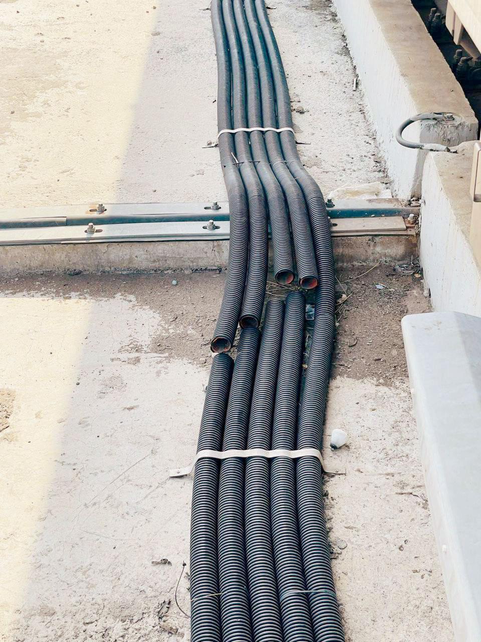 મેટ્રોના ટ્રૅક પાસે લાલ વાયર કાપીને ચોરી ગયા હતા. કપાયેલો વાયર દેખાય છે.