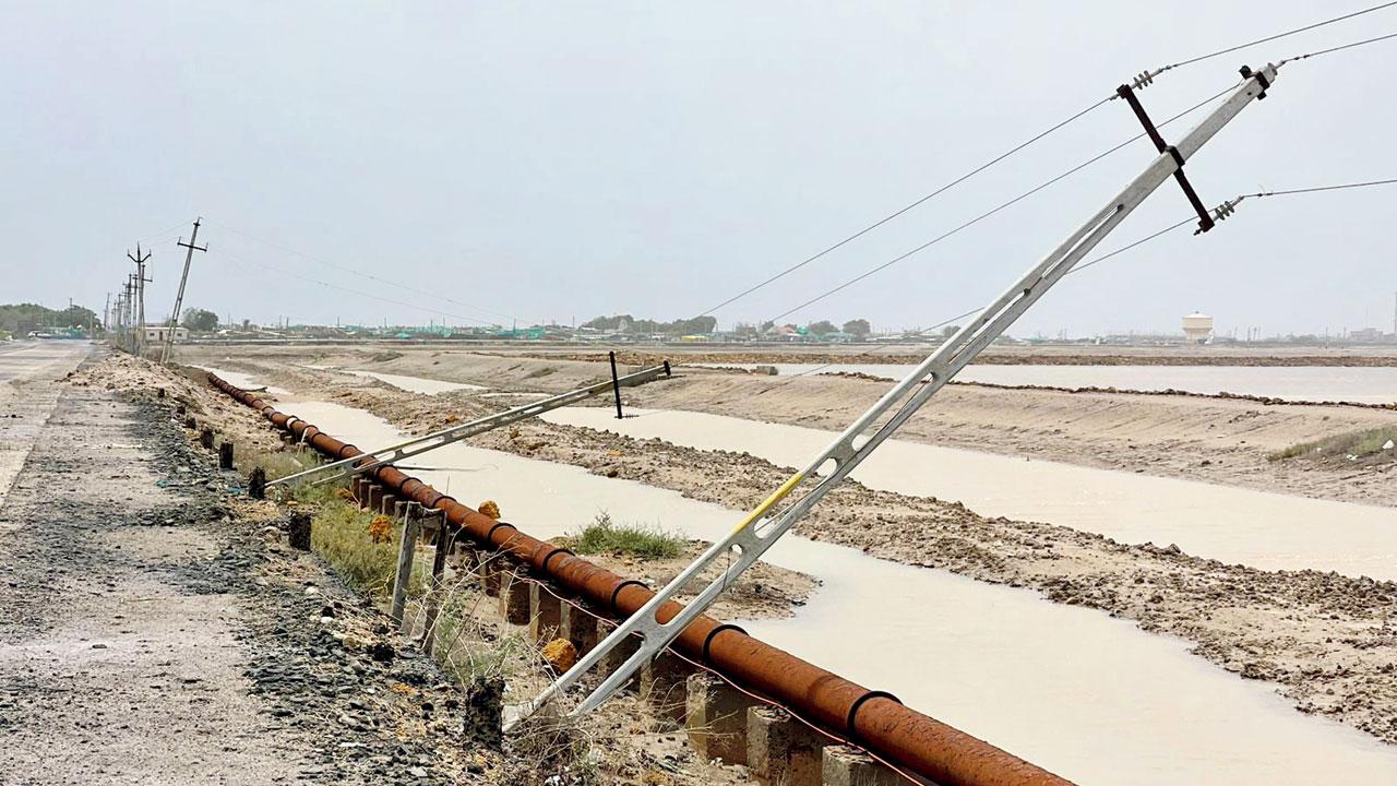માંડવીથી જખૌ જવાના માર્ગ પર વીજપોલ ધરાશાયી થયા હતા