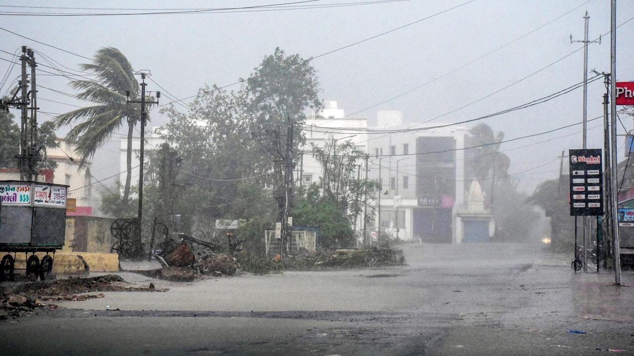 કચ્છમાં ગઈ કાલે બિપરજૉયના આગમન દરમ્યાન માંડવી બીચ ખાતે તહેનાત પોલીસ (તસવીર : પી.ટી.આઇ.)
