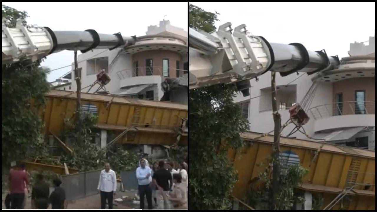 સુરતમાં ઘર પર ક્રેન ક્રેશ થયું (તસવીર: ANI વીડિયો)
