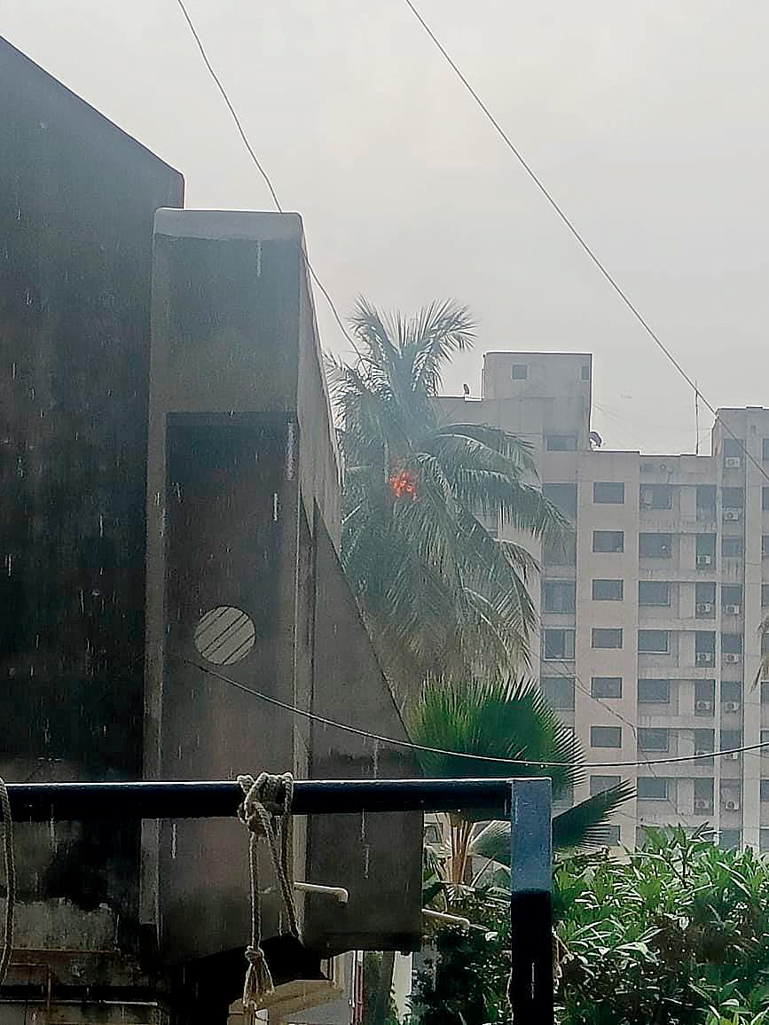 સુરતના વરાછા વિસ્તારમાં જવાહરનગર પાસે નારિયેળીના વૃક્ષ પર વીજળી પડતાં વૃક્ષ પર આગ લાગી હતી.