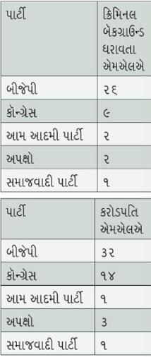 ગુજરાતમાં ગઈ વિધાનસભાની ચૂંટણીમાં જીતેલા ઉમેદવારોની સરખામણીમાં આ વિધાનસભાની ચૂંટણીમાં જીતેલા ઉમેદવારોમાં ક્રિમિનલ બૅકગ્રાઉન્ડ ધરાવતા એમએલએનું પ્રમાણ ઘટ્યું છે. તાજેતરમાં ચૂંટાયેલા ૧૮૨ ઉમેદવારોમાંથી ૪૦ જણ સામે ગુના નોંધાયા છે, જ્યારે ૨૦૧૭માં આવા ઉમેદવારોની સંખ્યા ૪૭ હતી. ૨૯ ઉમેદવારો સામે ગંભીર ગુના નોંધાયા છે, જ્યારે ૨૦૧૭ની વિધાનસભાની ચૂંટણી જીતનારા ૩૩ એમએલએ વિરુદ્ધ ગંભીર પ્રકારના ગુના નોંધાયા હતા.