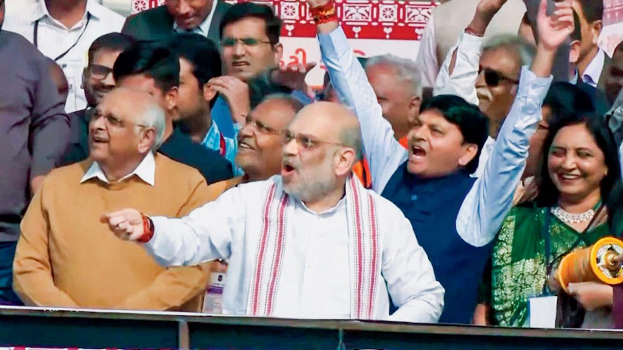 ગઈ કાલે અમદાવાદની શાંતિનિકેતન સોસાયટીમાં ગુજરાતના મુખ્ય પ્રધાન ભૂપેન્દ્ર પટેલ સાથે પતંગ ચગાવતા કેન્દ્રીય ગૃહપ્રધાન અમિત શાહ.