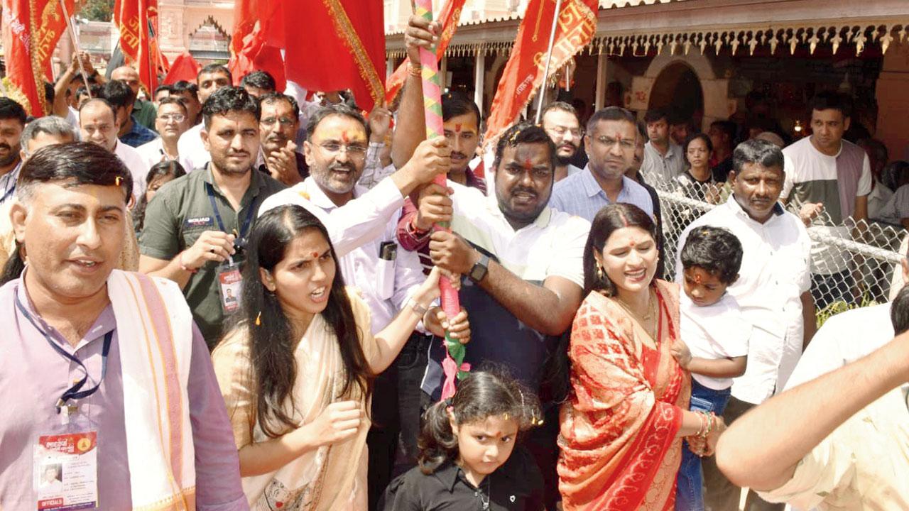 બનાસકાંઠા જિલ્લાના કલેક્ટર વરુણકુમાર બરનવાલ સાથી-કર્મચારીઓ સાથે ધજા ચડાવવા આવ્યા હતા.